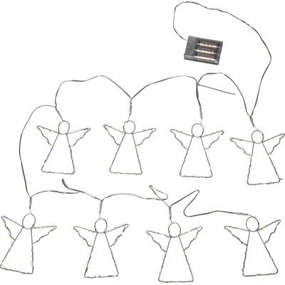 Veriga se napaja z baterijami, krasi pa jo jo 8 srebrnih kovinskih angelčkov, od katerih je vsak osvetljen z 10 lučkami LED v topli beli barvi.