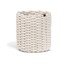 Izdelana je iz oblazinjene in pletene vrvi z nežno in mehko teksturo, ki spominja na breskovo kožo. Odlikuje jo gladek, žameten občutek. To vsaki košarici daje mehak in eleganten pridih v prostoru.