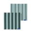 Kuhinjske krpe iz pisanih tkanin bodo razsvetlile vsako kuhinjo. Na voljo so v kompletu dveh, vsak z drugačnim črtastim vzorcem - eden z drznimi širokimi črtami, drugi pa s subtilnimi ozkimi črtami. Dinamično zasnovo poudarjata ikonični zviti vzorec in kontrastna modra etiketa.