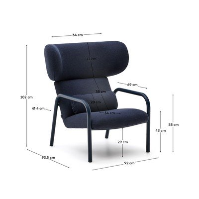Noge fotelja in naslonjala za roke so izdelane iz 38 mm jeklenih cevi s prašnim premazom in mikro teksturo, kar zagotavlja njihovo trdnost in dolgo življenjsko dobo. Ti elementi tvorijo stabilno osnovo in hkrati dopolnjujejo celoten dizajn fotelja, ki je del kolekcije z možnostjo dokupa tabureja. Inari je idealna izbira za tiste, ki iščejo kos pohištva z osebnostjo, ki bo dodal izrazit element vsakemu interierju.