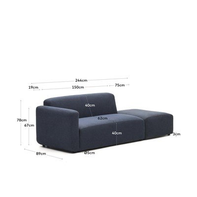 Temno modra sedežna garnitura 244 cm Neom – Kave Home