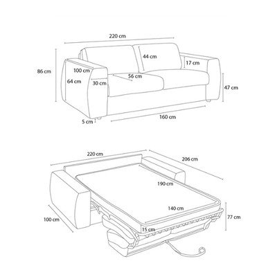 Črna sedežna garnitura za spanje/raztegljiva iz rebrastega žameta 240 cm Hugo – Bobochic Paris
