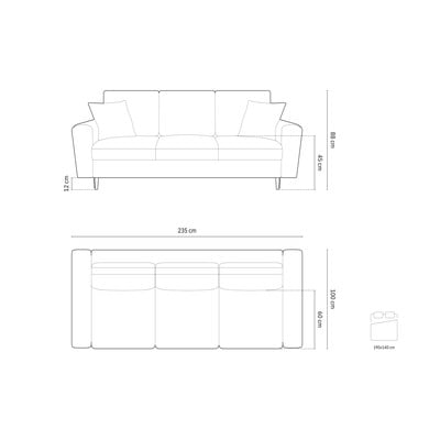 Žametna, raztegljiva/s prostorom za shranjevanje, temno modra, trisedežna, širina 235 cm
