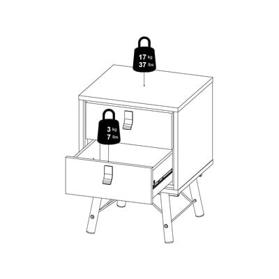 Nočna omarica Ry znamke Tvilum je elegantna kombinacija retro in sodobnega sloga. Temno rjava barva z lesenimi predali in črnimi ročaji daje mizici prefinjen videz. Dva prostorna predala zagotavljata dovolj prostora za shranjevanje. Poševne noge, povezane s kovinskimi prečkami, zagotavljajo stabilnost in dajejo mizici značilen videz.