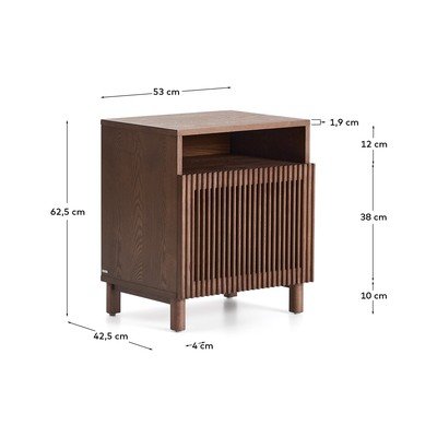 Nočna omarica Beyla znamke Kave Home združuje lepoto jesenovega lesa s skrbno premišljenim dizajnom. Njena konstrukcija je izdelana iz jesenovega furnirja, vrata in noge pa so iz masivnega lesa.