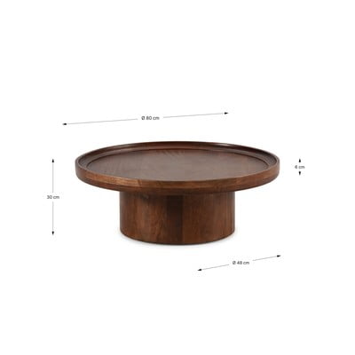 Iz masivnega manga, temno rjava, 80x80 cm, višina 30 cm