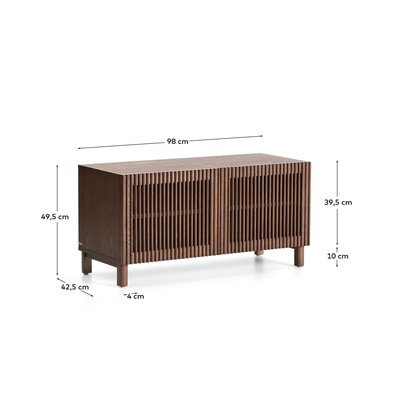 Omarica za čevlje Beyla znamke Kave Home združuje skrbno premišljeno zasnovo z bistvom jesenovega lesa. Njena struktura je izdelana iz jesenovega furnirja, vrata in noge pa iz masivnega lesa.
