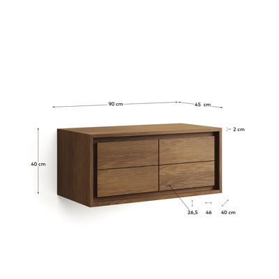 StenskaIz masivnega tikaPovršinska obdelava: lakTemno rjavaŠirina 90 cmVišina 40 cmGlobina 45 cm