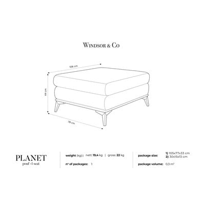 Kolekcija Planet ponuja zofe in pufe v očarljivem dizajnu s sodobnim pridihom. Njihovo oblazinjenje je izdelano iz visokokakovostne tkanine iz 100 % sintetičnih vlaken, ki vas bo spominjala na fino laneno tkanino.