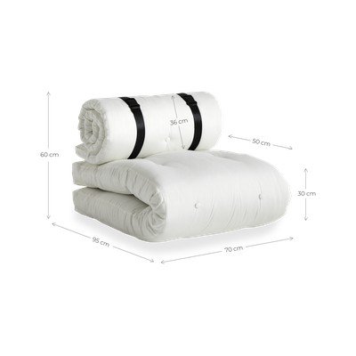 V kratkem času lahko iz istega kosa pohištva naredite enojno posteljo in udoben kavč. Vzmetnica Buckle Up je sestavljena iz dveh vzmetnic, od katerih je zgornja pritrjena na spodnjo z dvema trakovoma.