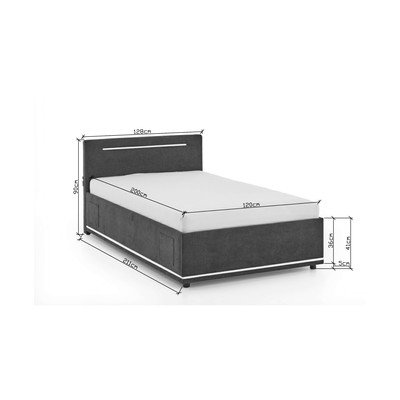 120x200 cm, s prostorom za shranjevanje, z letvenim dnom, oblazinjena, z osvetlitvijo/s priključkom USB, temno siva