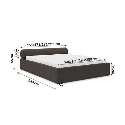 Rjava oblazinjena zakonska postelja s prostorom za shranjevanje z letvenim dnom 160x200 cm Cille – Ropez