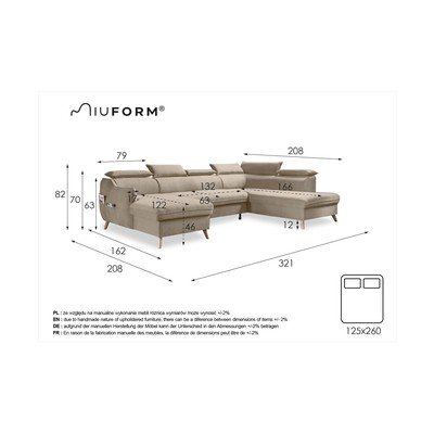 Nastavljiva/raztegljiva/s prostorom za shranjevanjeDesni kot/v obliki črke "U"Temno sivaVečsedežnaŠirina 321 cmGlobina 208 cmGlobina sedeža 63 cm