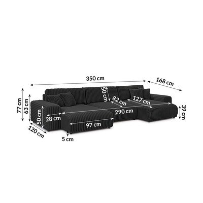 Iz rebrastega žametaRaztegljiva/s prostorom za shranjevanjeV obliki črke "U"Temno sivaVodoodporna/odporna na madežeVečsedežnaŠirina 350 cm