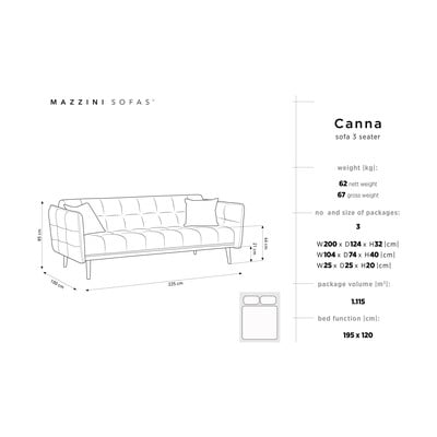 Kavč je mogoče raztegniti, zato ponuja veliko prostora, na katerem lahko udobno spite in se raztegnete. Sedežno površino podpirajo noge iz pravega bukovega lesa, ki izstopa s svojo nežno svetlo barvo.