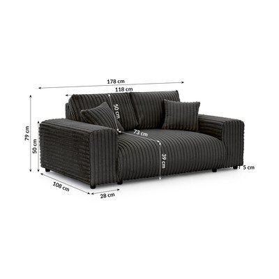 Iz rebrastega žameta, temno siva, vodoodporna/odporna na madeže, dvosedežna, širina 178 cm