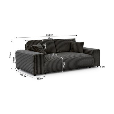 Iz rebrastega žameta, temno siva, vodoodporna/odporna na madeže, trisedežna, širina 213 cm