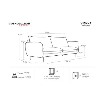 Svetlo siva zofa Cosmopolitan Design Vienna, 160 cm