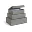 Komplet sestavljajo 3 škatle, ki jih je mogoče zlagati eno na drugo, s pokrovi na tečajih z magnetnim zapiranjem.