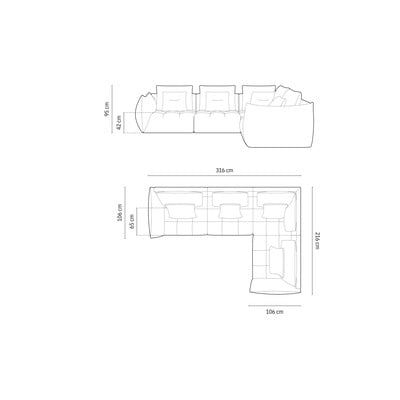 Desni kot/v obliki črke L, zelena, večsedežna, širina 316 cm