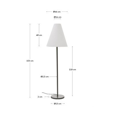Talna svetilka Navat iz Kave Home v vašo notranjost vnese eleganten, a minimalističen slog. Svetilka je izdelana iz kovine s temno zeleno obdelavo, dopolnjuje pa jo belo senčilo iz tkanine v obliki stožca. Talna svetilka je združljiva z žarnico E27 z največjo močjo 40 W. Žarnica ni priložena.