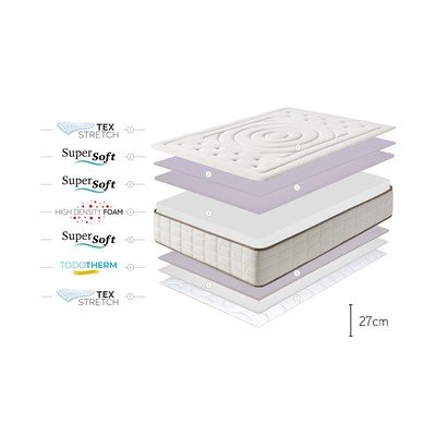 Vzmetnico dopolnjuje prevleka iz 3D raztegljive tkanine z ojačanim obodom in posebnimi šivi za večjo kompaktnost. Ta je antibakterijska, proti plesni in pršicam ter antistatična in protialergijska.
