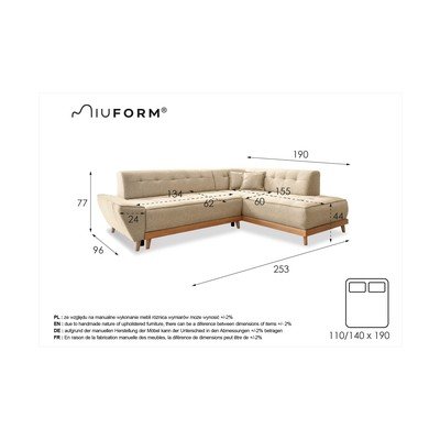 Zofa Dazzling Daisy v notranjost vnese skandinavski retro slog. Sestavljen je iz bukovih lesenih nog in sedežnih blazin, prevlečenih s tkanino z značilnimi šivi. Ima prostor za shranjevanje in ga je mogoče razstaviti, da nastane prostor za občasno spanje. Paket vključuje tudi 2 okrasni blazini.