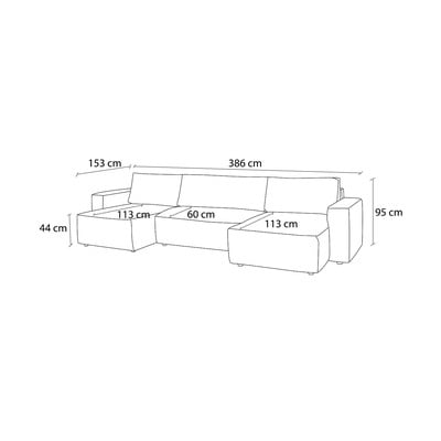 Iz rebrastega žameta, raztegljiva/s prostorom za shranjevanje, v obliki črke "U", turkizna, večsedežna, širina 386 cm