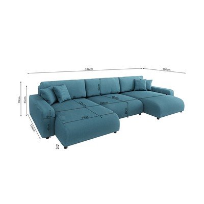 Iz rebrastega žameta, raztegljiva/s prostorom za shranjevanje, v obliki črke "U", turkizna, večsedežna, širina 332 cm