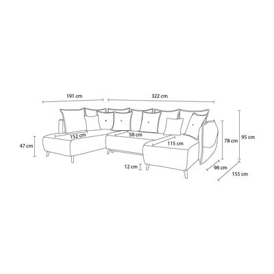 Raztegljiva/s prostorom za shranjevanjeV obliki črke "U"TurkiznaVečsedežnaŠirina 322 cmGlobina 191 cmGlobina sedeža 58 cm