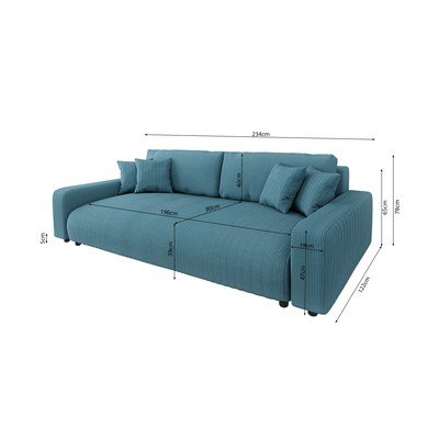 Iz rebrastega žameta, raztegljiva/s prostorom za shranjevanje, turkizna, trisedežna, širina 234 cm