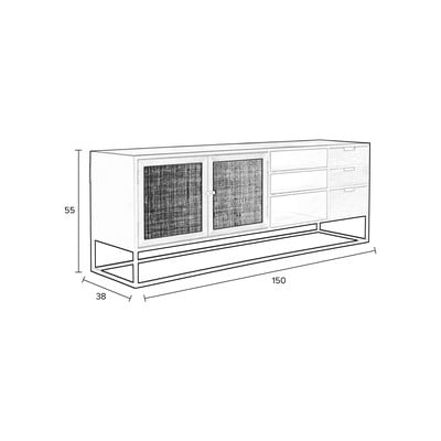 Iz ratana, iz MDF plošč, črna, širina 150 cm, višina 55 cm, globina 38 cm