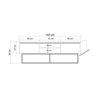 V orehovem dekorju, iz MDF plošč, površinska obdelava: Melamin, rjava, širina 140 cm, višina 50 cm, globina 40 cm
