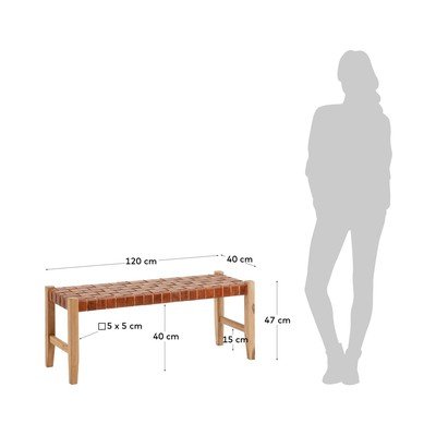 Usnjena, iz masivnega lesa, v konjak rjavi barvi/v naravni barvi, širina 120 cm, globina 40 cm, višina 47 cm