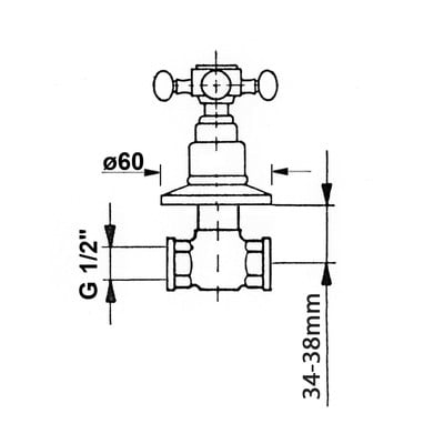 Ta skriti ventil za upravljanje toka vode je zasnovan za priključitev na vročo vodo. Pri tlaku 2 bara je pretok vode 20 litrov na minuto, pri 3 barih pa 30 litrov na minuto. Ima priključek G 1/2". Priložena je tudi potrebna montažna armatura in oznaka za vodo v češkem in angleškem jeziku.