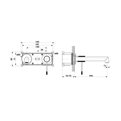 Ta medeninasta pipa z dvema elementoma je še posebej primerna za dopolnitev umivalnikov, ki nimajo luknje za namestitev pipe. Opremljena je s kartušo premera 25 mm.