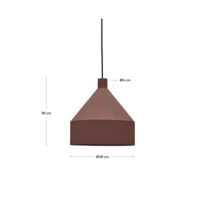 Viseča svetilka Peralta v terakoti s kovinskim senčnikom je ekskluzivna zasnova podjetja Kave Home. Svetilka je združljiva z žarnicami E27 z največjo močjo 40 W. Žarnica ni priložena.