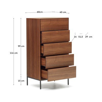 Komoda VedranaV orehovem dekorju, iz MDF plošč, površinska obdelava: Furnir/površinska obdelava: lak, v naravni barvi, širina 60 cm, višina 114 cm, globina 40 cm