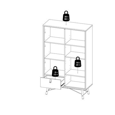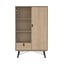 Z dimenzijami 102x162x40 cm ponuja veliko prostora za shranjevanje zaradi dveh vrat, enega predala in petih polic. Levi zastekljeni del s policami omogoča razstavljanje okraskov, desni del z vrati pa diskretno shranjevanje. Črne kovinske noge zagotavljajo stabilnost in poudarjajo sodobno zasnovo.