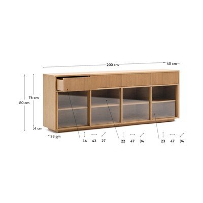 Z drsnimi vratiV hrastovem dekorjuIz MDF ploščPovršinska obdelava: Furnir/površinska obdelava: lak/površinska obdelava: kaljenjeV naravni barviŠirina 200 cmVišina 80 cmGlobina 40 cm