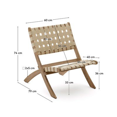 Fotelj Chabeli znamke Kave Home je odličen dodatek za vaše prostore na prostem, bodisi na terasi bodisi na plaži. Njegova zasnova združuje trdno leseno konstrukcijo z ročno tkanim sedežem in naslonom, ki vas vabita k udobnemu sproščanju.