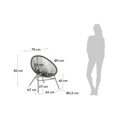 Vrtni fotelj SamanthaKovinski, zelen, nosilnost 130 kg, širina 70 cm, višina 83 cm, globina 67 cm