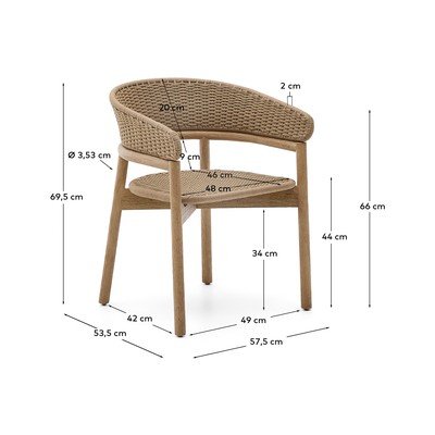 Sedež in naslonjalo sta izdelana iz ročno pletene vrvi, ki je odporna na UV-žarke. Zaradi tega je stol primeren tako za notranjo kot zunanjo uporabo.