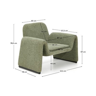 Fotelj Melvia znamke Kave Home izstopa s skrbno zasnovo, ki jo je ekskluzivno za Kave Home oblikoval Morten Georgsen. Njegovo oblazinjenje iz šenilje z izrazito strukturo in 3D učinkom je zelo nežno na dotik in zagotavlja objemajoče udobje.