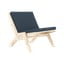 Okvir fotelja je izdelan iz masivnega bora, značilne nagnjene noge pa mu dodajajo lahkotnost in stabilnost.