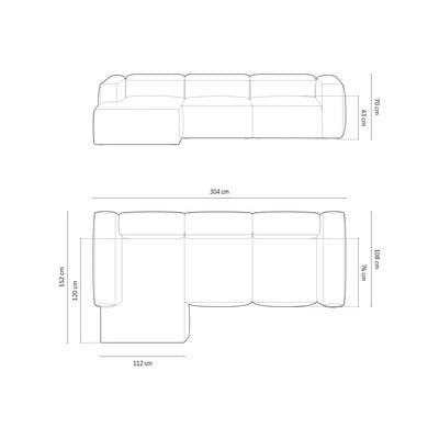 Iz rebrastega žameta, levi kot/z ležalnikom, zelena, štirisedežna, širina 304 cm
