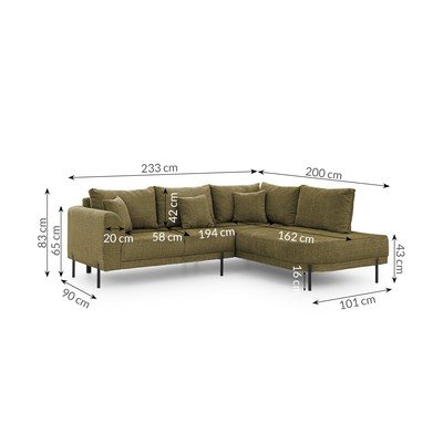 Iz šeniljeDesni kot/v obliki črke LZelenaPrimerna za hišne ljubljenčke/odporna na madežeŠtirisedežnaŠirina 233 cm