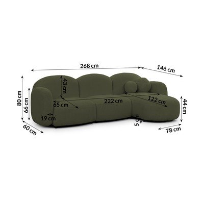 Zelena kotna sedežna garnitura iz tkanine bouclé (levi kot/z ležalnikom) Orbit – Ropez