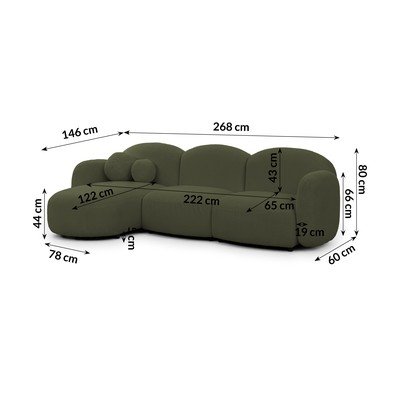 Zelena kotna sedežna garnitura iz tkanine bouclé (levi kot/z ležalnikom) Orbit – Ropez