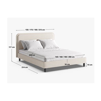 Sivo-bež oblazinjena zakonska postelja z letvenim dnom 200x200 cm Aveline – Micadoni